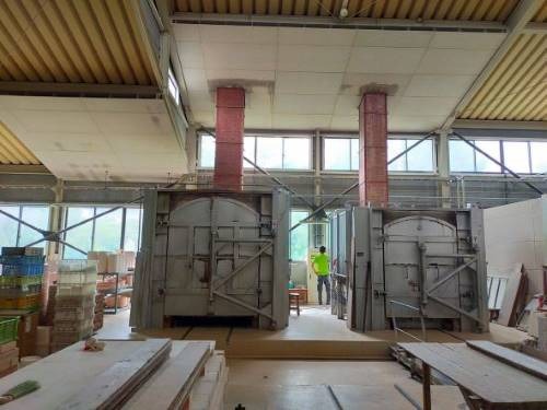 3.割れを防ぎ、絵付けなどの装飾をしやすくするために、乾燥させた素地を窯に入れ、およそ900度の低温で焼きます。